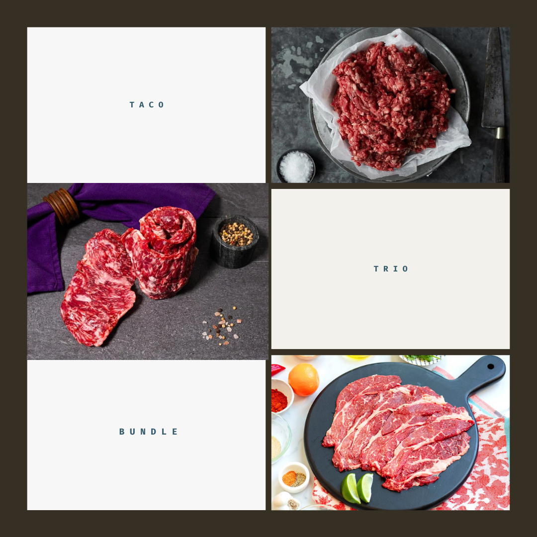 Browse various bundles that each offer a unique and pleasant dining experience. From taco meat to superb steaks, these bundles offer a variety of our best products to choose from!